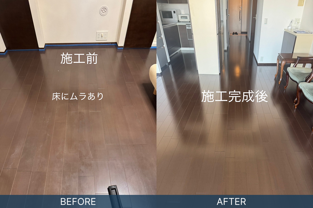 ※一部は家具を移動しながら段階的に施工。初日は17時にコーティング塗布完了です。